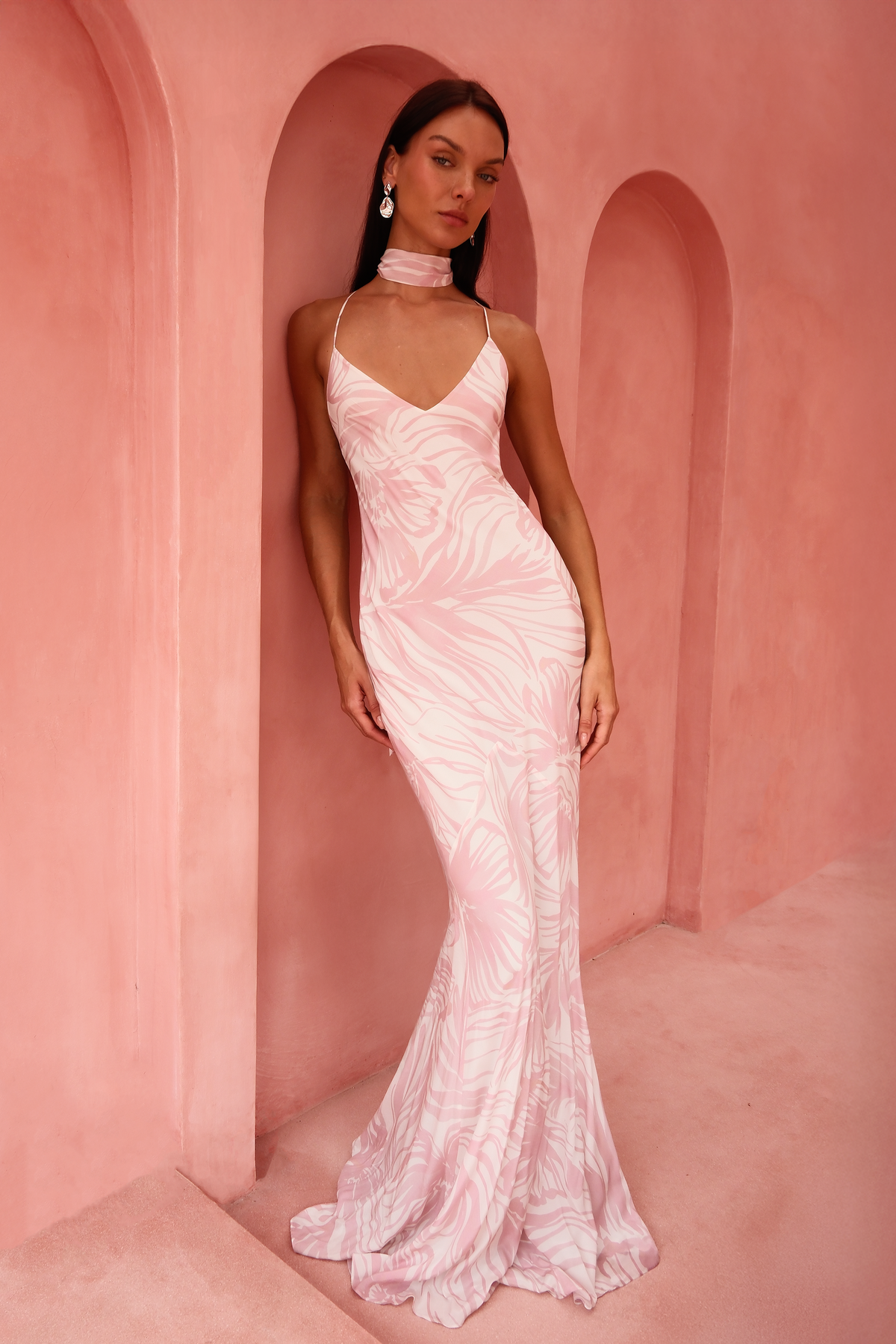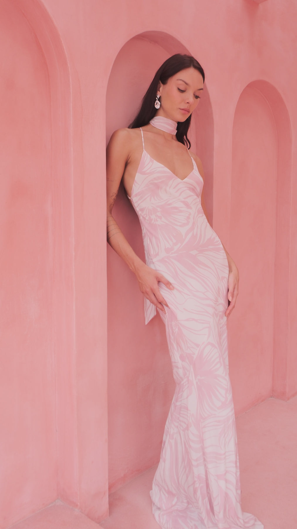 A fluid, ethereal silhouette that moves beautifully with the body, the Isla Dress is crafted in a soft, lightweight viscose with a romantic pink abstract motif. The delicate V-neckline and bias-cut shape create a naturally flattering drape, while the low open back adds an alluring finish. Designed with adjustable straps for the perfect fit.